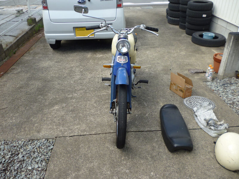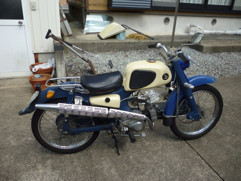 ■ホンダc110スポ-ツカブ/年式:60年代/型式:C110/排気量:50cc/色:ブル-/ミッション:4速/走行距離:メータ交換の為不明。