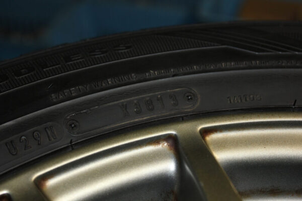■程度:傷・汚れ等はございますが気になるガリ傷は見当たりませんが、1つゴムバルブ不良(エア漏れ)にて要交換/またタイヤは日の当たらない場所で保管しており、ひび割れは見受けられませんが年数経過で劣化も考えられますので使用は自己責任でお願いいたします